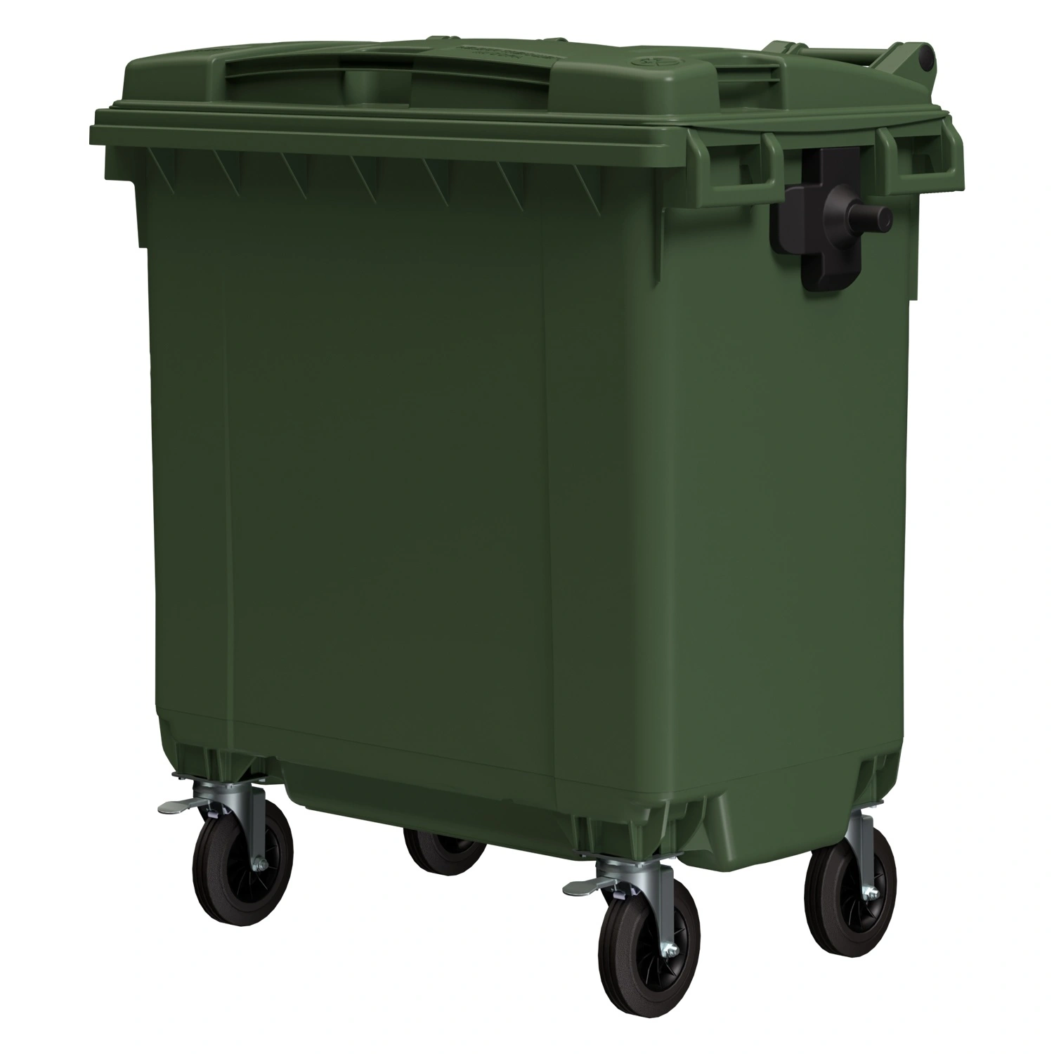 Мусорный контейнер 770 л iPlast зелёный 4-колёсный с зелёной крышкой