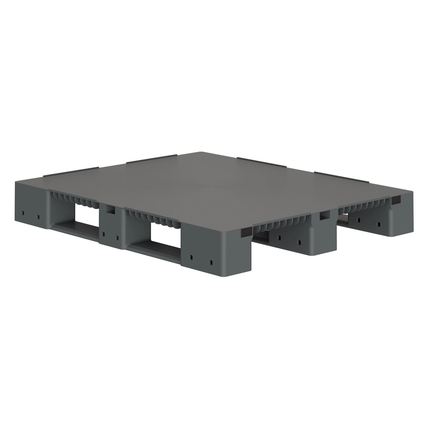 Пластиковый паллет 1200х1000х150 мм iPlast серый сплошной на 3 полозьях с бортиком и 2 трубами усиления