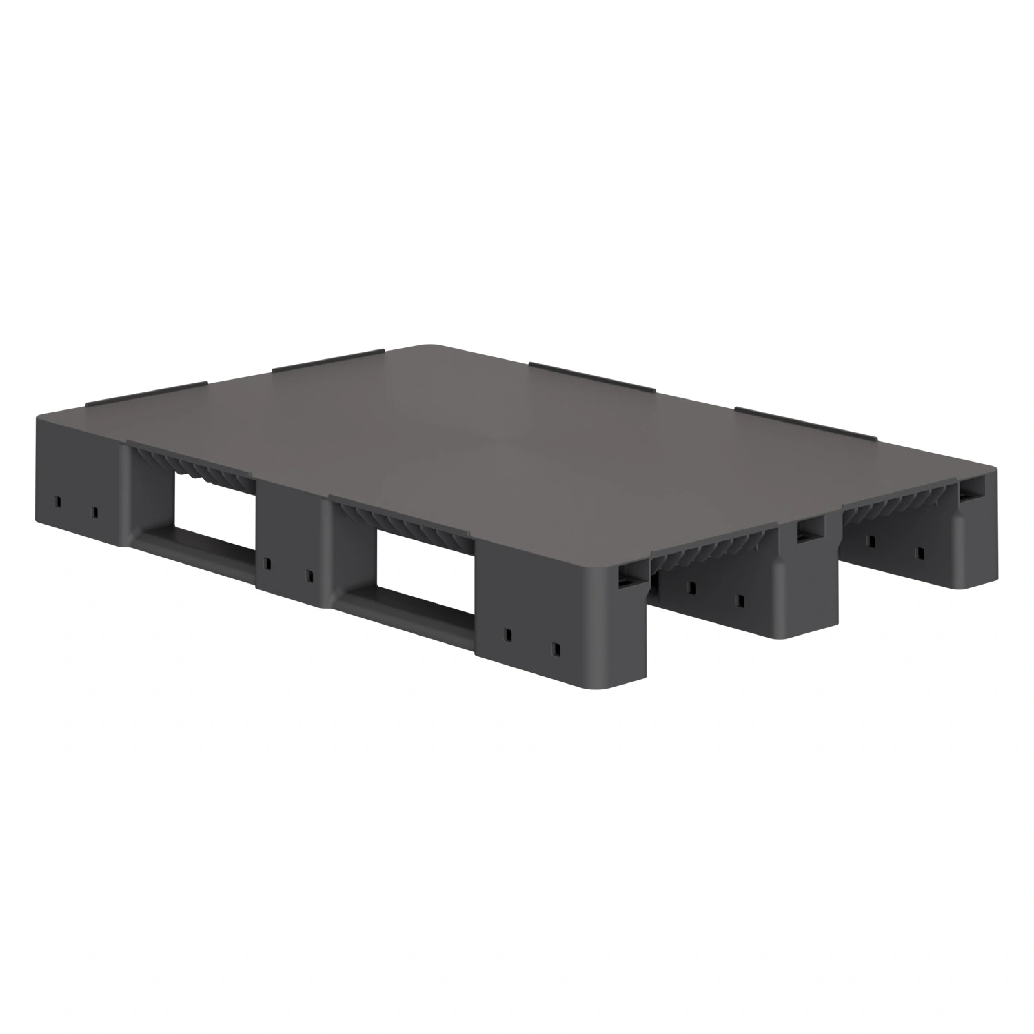 Пластиковый паллет 1200х800х150 мм iPlast тёмно-серый ЭКО сплошной на 3 полозьях с бортиком