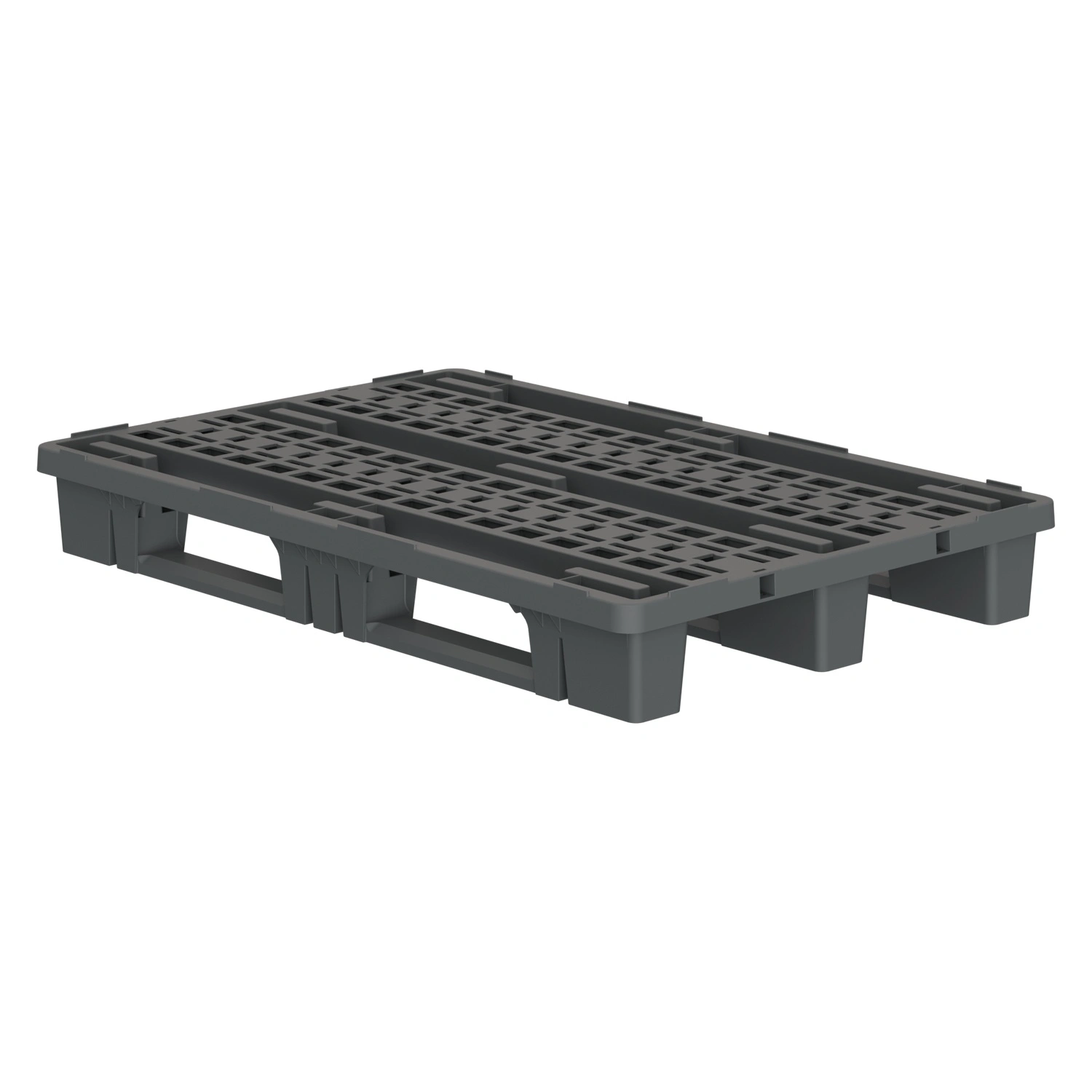 Пластиковый паллет 1200x800x153 мм iPlast серый перфорированный на 3 полозьях с бортиком